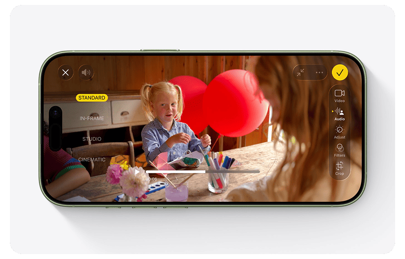 Фотографические инструменты iPhone 17 дают простор для вашего творчества. 2-кратный телеобъектив позволяет приближать или отдалять объекты съемки с исключительной детализацией. Новая функция «Очистка» без труда удаляет с фотографий нежелательные объекты, людей и отвлекающие фоновые элементы.