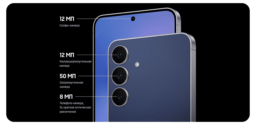 Познакомьтесь с самым тонким телефоном серии FE – Galaxy S25 FE имеет толщину всего 7.4 мм и весит 190 граммов. Его тонкий корпус дополняет инновационный дизайн камеры и самые тонкие рамки, которые когда-либо представлялись, для еще лучшего пользовательского опыта. Смартфон Galaxy S25 FE вдохновлен дизайном серии S и доступен в четырех элегантных цветах со специальным покрытием: темно-синий, черный, светло-синий, белый. Устройство также имеет двухцветную рамку, которая подчеркивает его стильный внешний вид.
