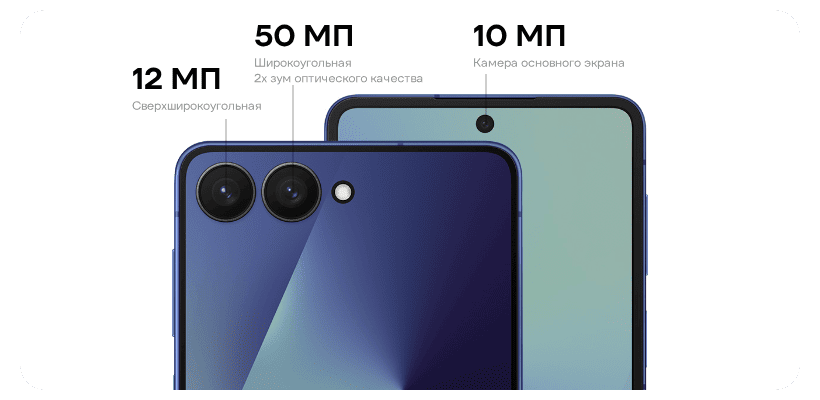 Усовершенствованный процессор Galaxy Z Flip7 управляет всем – от батареи до дисплея. Это гарантирует, что устройство работает с оптимальной скоростью, не теряя производительности или энергии. Смотрите ли вы стримы, играете в игры или редактируете новейшее видео, с Samsung Galaxy Z Flip7 вас больше ничего не будет ограничивать. Внутри он оснащен передовым процессором Samsung с десятью ядрами и скоростью до 3,3 ГГц. Вы получаете на 9% более быструю обработку, на 23% более плавную работу графического процессора и на 22% более быстрый нейропроцессор по сравнению с предыдущей моделью. Кроме того, он имеет 12 ГБ оперативной памяти и 512 ГБ памяти для хранения данных.