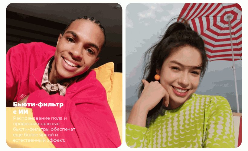 Функция AI Beautify распознает пол и применяет ретушь профессионального уровня для получения естественных и в то же время отточенных результатов. Попрощайтесь с чрезмерно обработанными селфи – с этим телефоном ваши фотографии будут выглядеть подлинными.